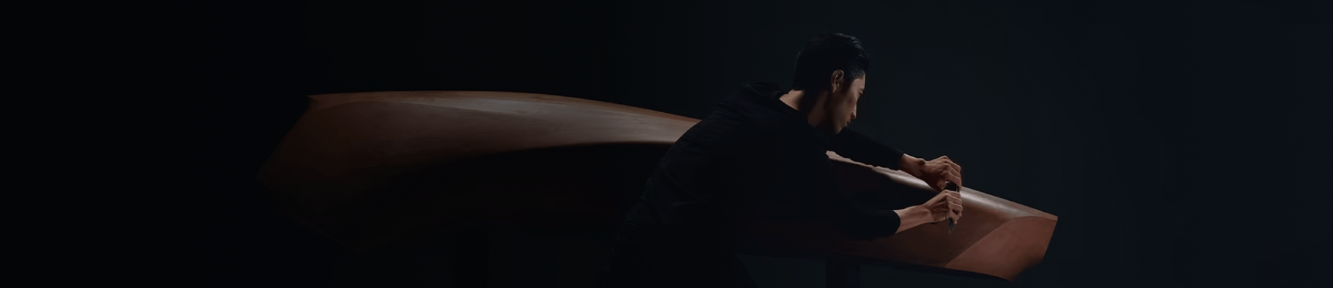 De la misma forma en que un artista quiere provocar una respuesta en su audiencia, queremos diseñar autos que emocionen a los conductores. Solamente las manos humanas pueden crear arte verdadero y así es donde comienza nuestro proceso. Lo llamamos "Preparación exploratoria", y rara vez incluye algo parecido a un automóvil. En su lugar, experimentamos con formas que encontramos atractivas o diferentes y traducimos estas ideas en la fabricación, donde la mano humana siempre juega un papel vital.