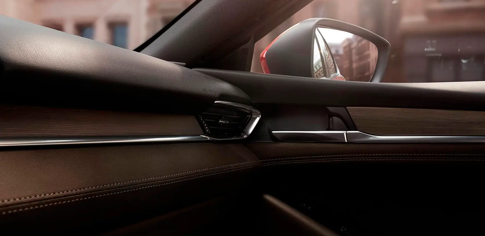Este vehículo sedán cuenta con materiales de calidad superior como el cuero napa marrón y la madera real, creados por los artesanos de Mazda para rodearte de un confort refinado.